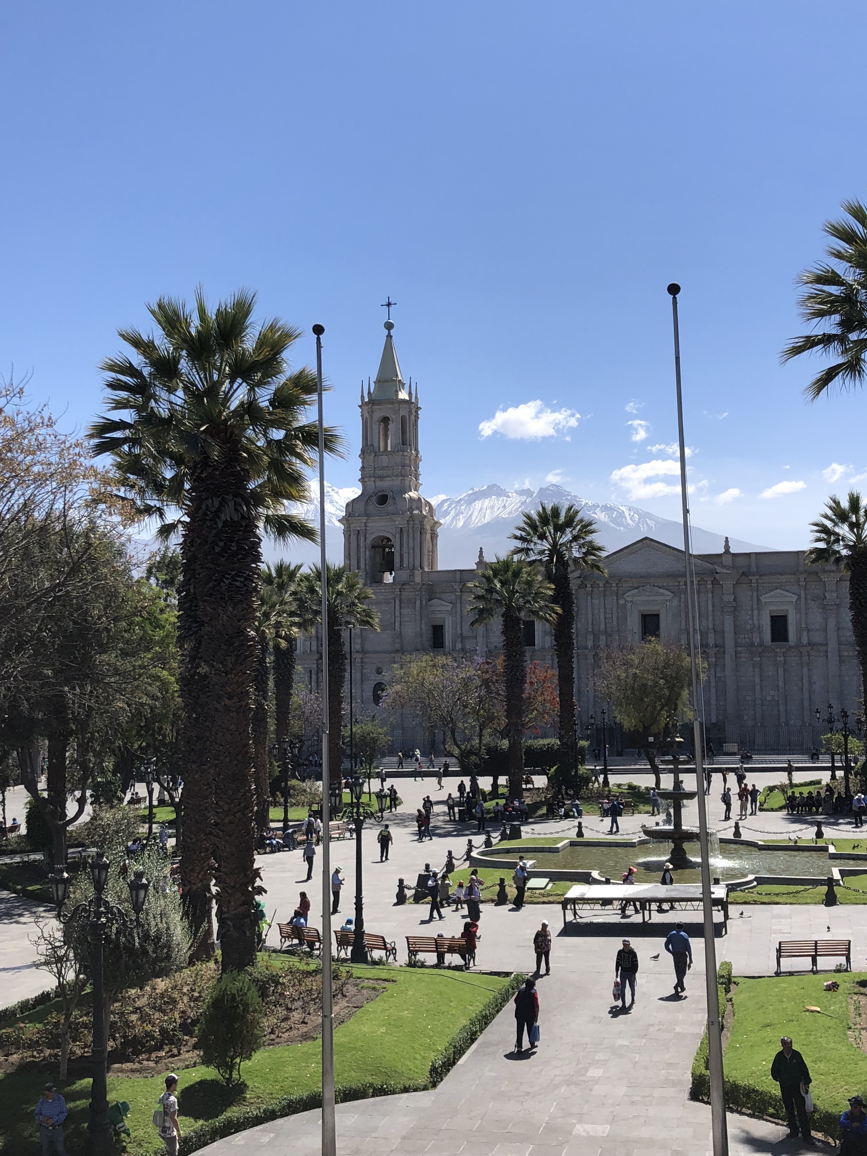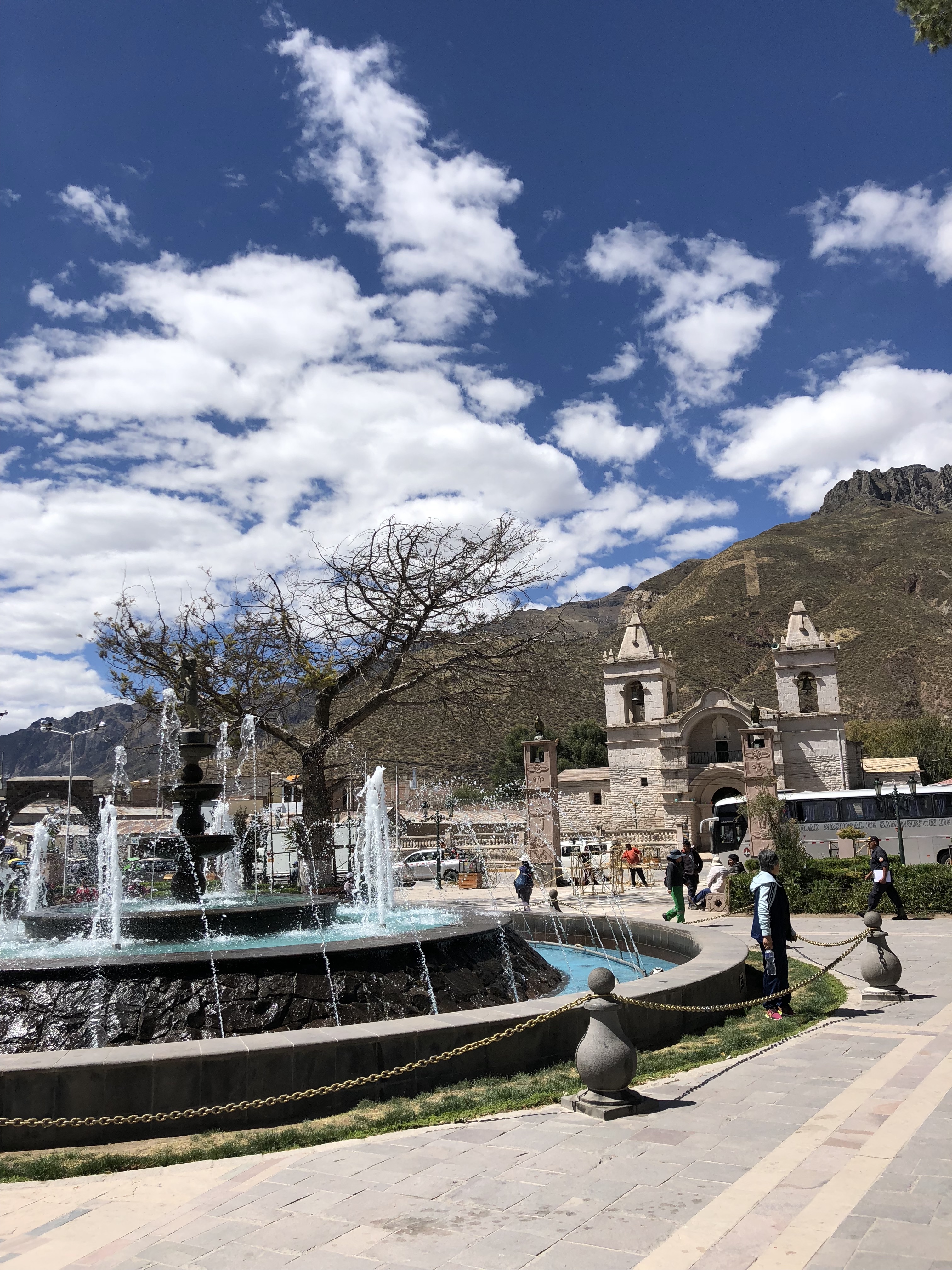 - Día 7: Arequipa es una de las ciudades más bonitas que visitamos, tiene mucha historia y está entre volcanes y montañas lo cual aporta unas vistas espectaculares. Otro dato importante es que es una de las pocas ciudades con aeropuerto. Al llegar a la estación de bus os recomendamos comprar el billete de bus para el trayecto del día siguiente hacia el Valle del Colca (Chivay), en este trayecto Cruz del Sur no opera por lo que tendréis que comprar billetes en alguna compañía local sin página web. Nosotros los compramos en Reyna y el bus parecía que iba a romperse y que no llegaríamos pero igualmente creemos que es la mejor opción para llegar así que relajaros y disfrutad. Comed si podéis en una Picantería, nosotros escogimos La Nueva Palomino, llena de peruanos y con unas raciones extra grandes.