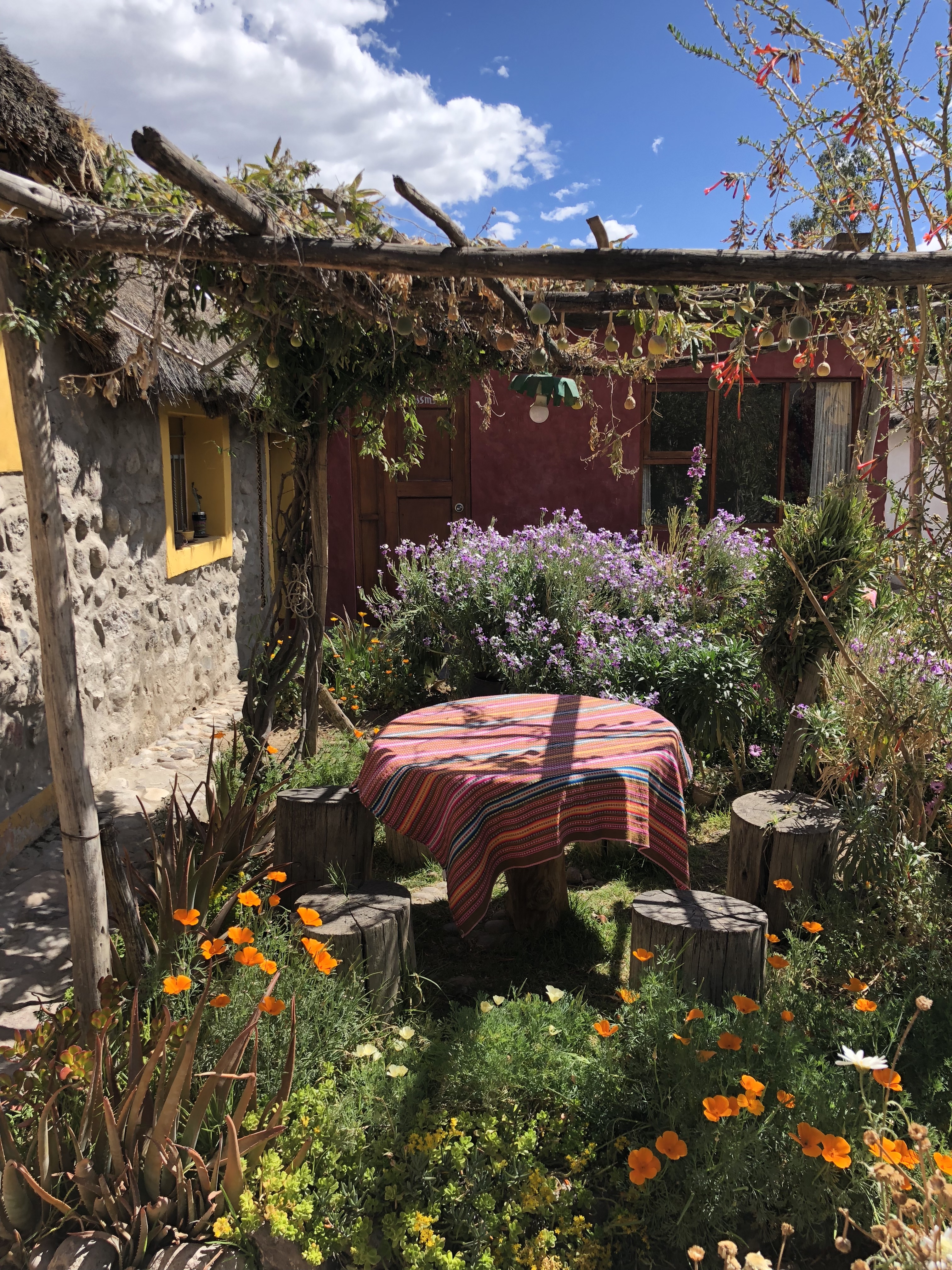 - Día 8: Cogemos el bus de Arequipa al Valle del Colca. Nosotros los compramos en Reyna y el bus parecía que iba a romperse y que no llegaríamos pero igualmente creemos que es la mejor opción para llegar así que relajaros y disfrutad. Una vez llegados a Chivay veréis que es un pubelo con apenas carreteras y asfalto pero muy enfocado al turismo por lo que os recomendamos alejaros un poco y hacer un poco de turismo vivencial. Nosotros nos hospedamos en Yanque, en casa de Natalio que la encontramos por Airbnb: Casa Bella Flor. Esta fue una de las experiencias más bonitas y satisfactorias del viaje, poderte alojar con Hilde y Natalio es un regalo, desayunad y cenad con ellos y comeréis INCREÍBLE.